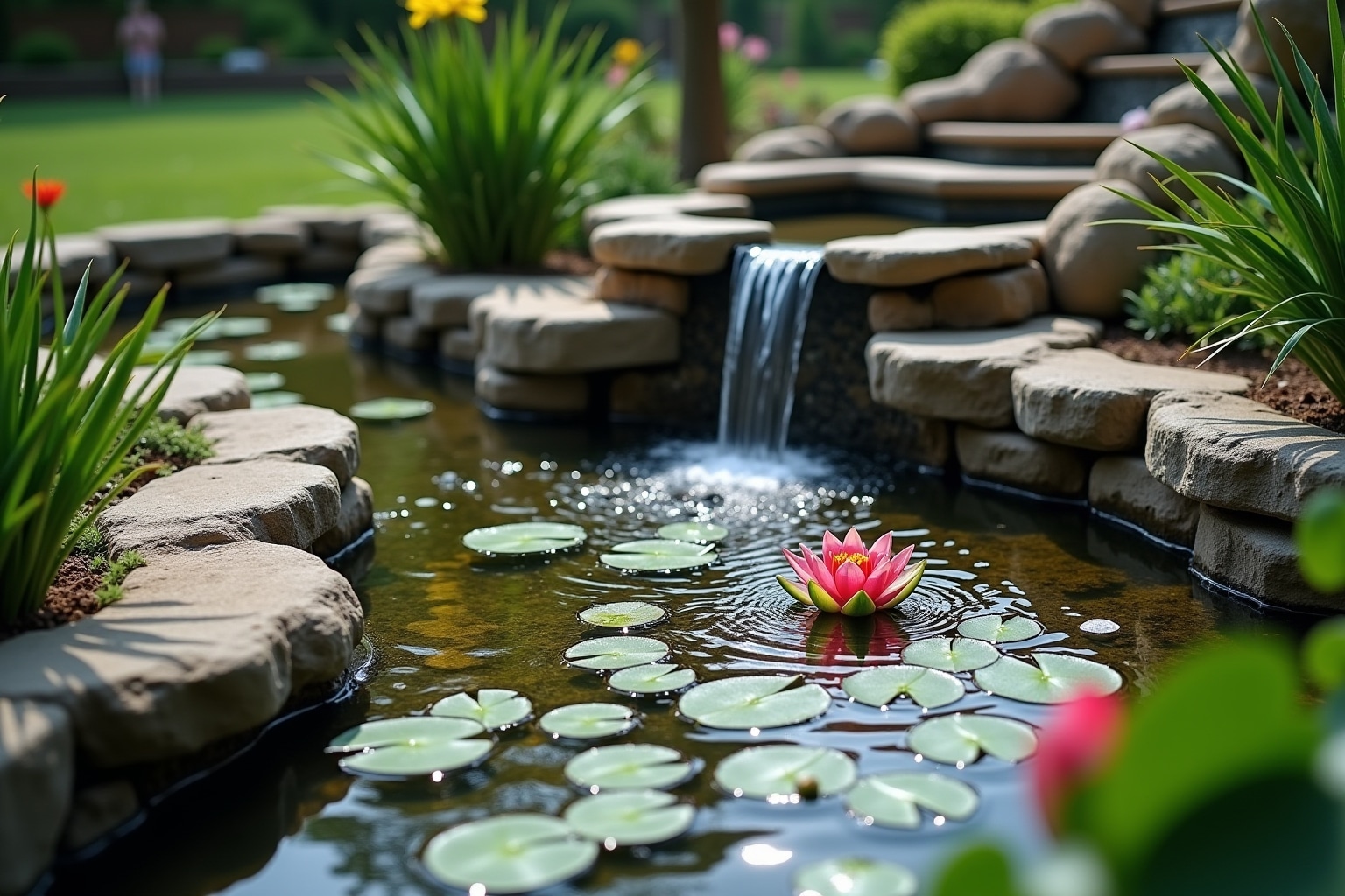 - Der japanische Garten: Gestalte deine Wasserstelle im japanischen Stil mit Steinen, Moos und Bambus. Ein kleiner Wasserfall oder ein sanft plätschernder Bachlauf verleihen deinem Garten eine meditative Atmosphäre.