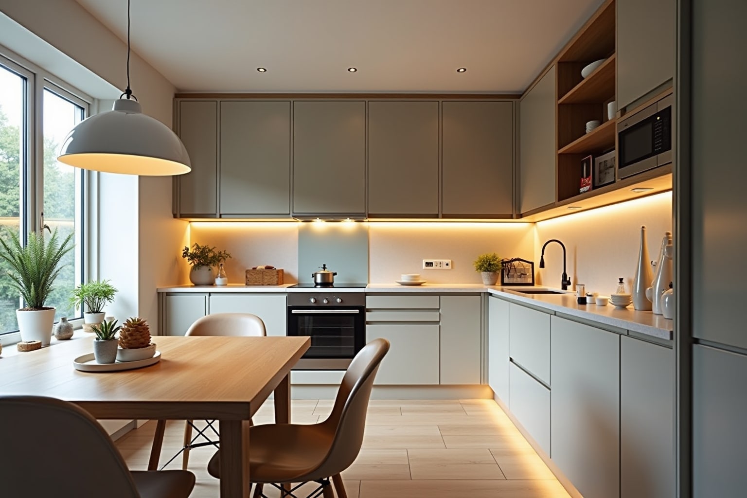 Die richtige Beleuchtung ist entscheidend für die Atmosphäre und Funktionalität einer Küche. Überlege, ob deine aktuelle Beleuchtung ausreicht. Zusätzliche Unterbauleuchten unter den Hängeschränken verbessern die Ausleuchtung der Arbeitsfläche erheblich und schaffen Gemütlichkeit. Moderne LED-Streifen können ebenfalls leicht angebracht werden und sorgen für ein angenehmes Ambiente. Auch der Austausch alter Lampenschirme oder Leuchten gegen neue, stilvollere Modelle kann das Erscheinungsbild stark beeinflussen.