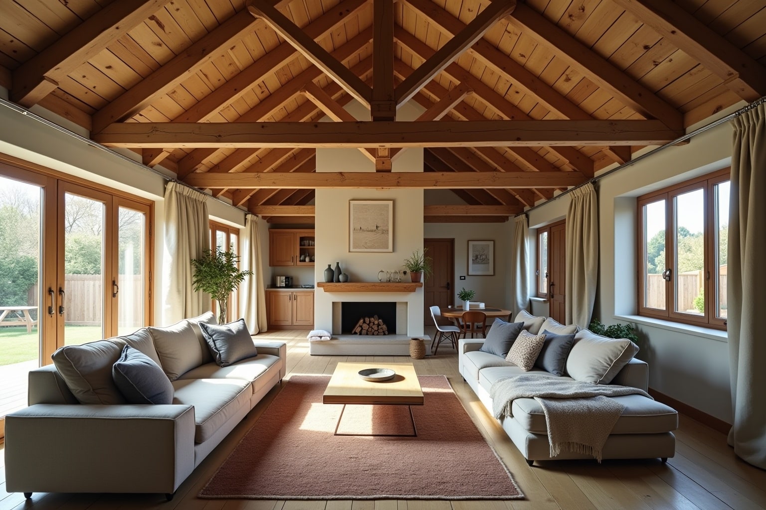 - Lichtkonzept: Scheunen haben oft wenig Fensteröffnungen. Nutze Gauben, Dachfenster, Oberlichter oder sogar großflächige Verglasungen, um viel Tageslicht ins Innere zu bringen. Eine durchdachte Beleuchtung ist ebenfalls entscheidend für die Atmosphäre.