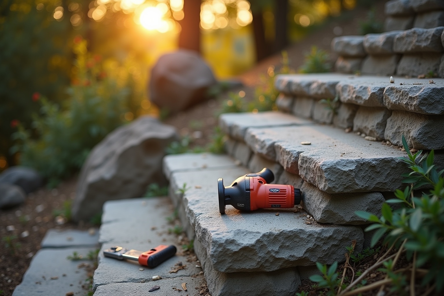 Materialien und Werkzeuge für die Steintreppenrenovierung
